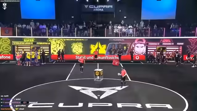 00:00:03Der Stream startet mit der Begrüßung der ersten beiden Teams in der Cupra Arena. Die Präsidenten der Kaktus-Kicker und des No Rules FC liefern sich einen kurzen Trash-Battle. Dabei wird deutlich, dass beide Teams gut vorbereitet sind und sich auf das erste Spiel freuen. Nach den Statements zur Motivation und dem Training der Teams werden sie zu ihren Bannern geführt und der Fokus wechselt zum nächsten Aufgebot.
