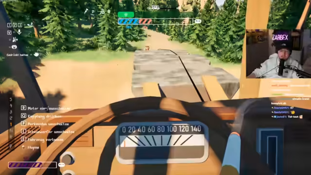 01:55:14Der Stream beginnt mit dem Spiel RV There Yet. Nach technischen Schwierigkeiten beim Einladen in die Lobby, in der Monte, Schradin und G-Time bereits sind, startet das gemeinsame Spiel. Sie bilden ein Squad und beziehen einen Camper als Basis. Zuerst geht es um das Reparieren des Fahrzeugs, das Finden von Teilen und das Verständnis der Spielziele, wie das Befahren von Schluchten mittels selbstgelegter Bretter.