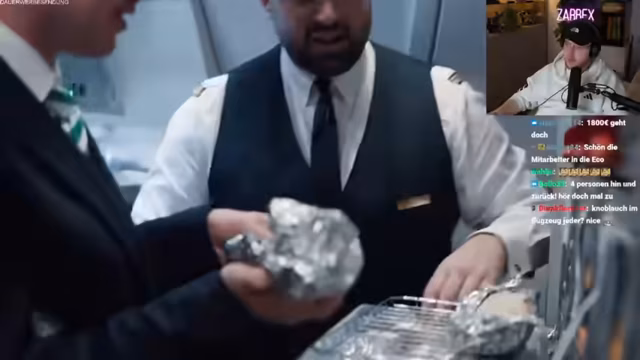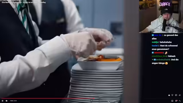 00:55:05Während des simulierten Fluges fällt auf, dass der YouTuber Aaron Troschgemuth an Bord ist. Dies löst bei dem Streamer die Frage aus, ob dies ein Zufall oder eine inszenierte Begegnung war. Er versucht daraufhin, Aaron anzurufen, um das Rätsel zu lösen. Gleichzeitig wird der Arbeitsalltag der Flugbegleiter detailliert beschrieben. Dazu gehören das Erhitzen von Speisen, die Vorbereitung verschiedener Brotsorten und die Arbeit mit engem Platzangebot.
