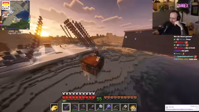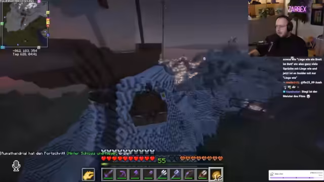 02:09:21Ein Höhepunkt des Streams ist eine interaktive Segelflug-Reise zu Hugos Basis. Der Streamer leiht sich hierfür Hugos 'Happy Ghast', was auf eine Art provisorische Luftfahrt-Abenteuer hinausläuft. Bei dieser Gelegenheit überwinden frühere Spannungen, und es kommt zu einer symbolischen Versöhnung und Übergabe. Der Streamer verspricht, das besondere Item, das er 'Olaf' getauft hat, wieder zurückzugeben, und flicht eine persönliche Note ein, indem er verspricht, es wie sein eigenes zu pflegen. Diese positive Interaktion dient als eine beruhigende Pause im ansonsten angespannten Spielverlauf.