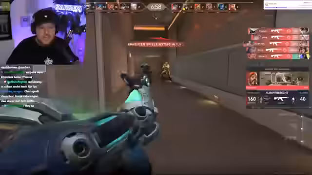 05:25:55Während des laufenden Spiels ist die Kommunikation das zentrale Element. Der Streamer gibt kontinuierlich taktische Anweisungen für verschiedene Zonen der Map, wie zum Beispiel einen Push auf C oder B. Es wird viel Wert auf diszipliniertes Vorgehen, das Nutzen von Fähigkeiten und das korrekte Postieren gelegt. Das Team kämpft gegen einen erfahrenen Gegner und muss immer wieder seine Taktik anpassen, um Runden zu holen.