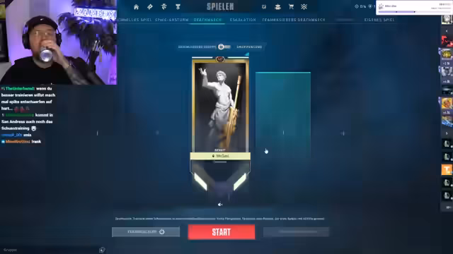 03:56:16Zu Beginn des Stream-Videos wird der Fokus auf das bevorstehende Valorant-Turnier gelegt, der Illigella Velo Cup, mit einer Preisgeldsumme von 15.000 Euro. Der Streamer zeigt seine Vandal-Waffe, ausgestattet mit dem Reaver-Skin und dem Riot Gun Buddy, und gibt eine ehrliche Einschätzung der eigenen Leistung und der Teamchancen. Es besteht der starke Wille, das Turnier zu gewinnen und nicht nur die Top-Plätze zu belegen. Der Plan für den Stream umfasst neben dem Turnier auch gemütliche Sessions mit GTA San Andreas und Just Chatting.