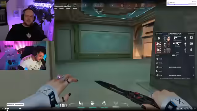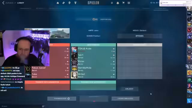 06:24:23Der Stream beginnt mit dem Start des Valo-Cups. Es kommt sofort zu intensiven Diskussionen über Strategien und Waffenausrüstungen. Ein Nutzer kauft Schradin eine 'Ghost', während andere debattieren, ob er Full-Schild oder eine andere Waffe kaufen soll. Konflikte entstehen, da Schradin oft laut ist und andere wie Faro besser performen. Das Team unternimmt einen Push auf Yellow, aber Schradin ist in einer Ecke gefangen, was zu Frustration führt. Der Chat bemerkt, dass das Gegnerteam überlegen spielt, und das eigene Team fühlt sich 'gefickt'. Trotzdem wird B als nächster Angriffspunkt ins Auge gefasst.