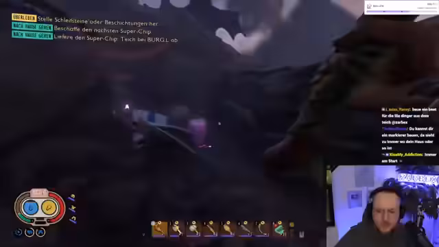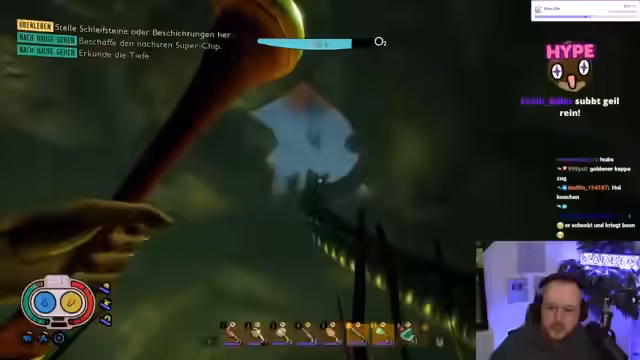 04:12:48Die Spieler erkunden ein verstecktes Labor und besiegen einen Bossgegner. Sie entdecken eine Laborwerkbank, die zum Craften genutzt werden kann. Es wird überlegt, ob man im Spiel schlafen soll, um Ressourcen zu sparen. Der Chat gibt den Tipp, Flossen zu craften, was die Spieler umsetzen. Sie stellen fest, dass sie den Blasenhelm noch nicht craften können, da ihnen Ressourcen fehlen. Die Spieler setzen ihre Erkundung fort und suchen nach einem Weg, tiefer in das Labor einzudringen. Nach einiger Zeit stellen sie fest, dass sie den Bereich abgeschlossen haben und suchen nach einem Ausgang. Sie aktivieren Sicherungen, um den Zugang zu neuen Bereichen freizuschalten, was sich aufgrund des geringen Sauerstoffvorrats als schwierig erweist. Ein Spieler stirbt fast, kann sich aber retten. Sie finden einen Weg durch das Labor und entdecken einen Apfelring, den sie als Belohnung ansehen. Die Spieler suchen nach einer Möglichkeit, eine Schleimpilzfackel unter Wasser zu nutzen, um die Sicht zu verbessern.