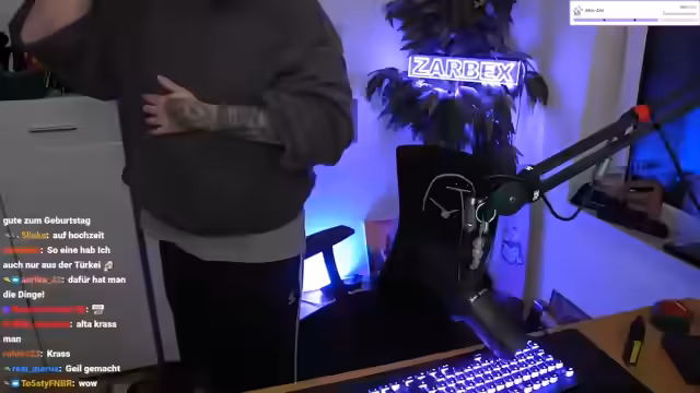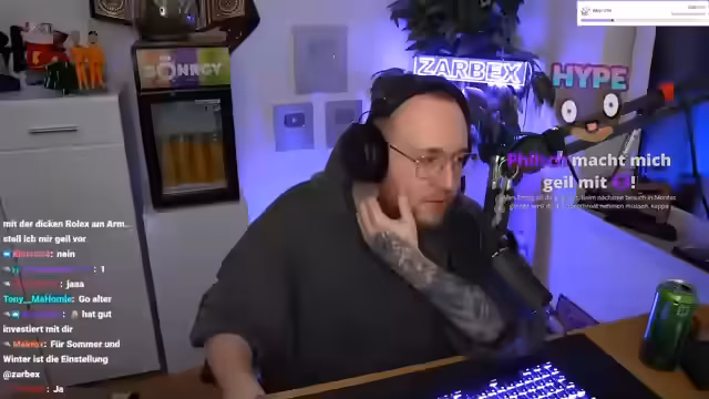 02:21:03Zarbex liest Kommentare im Chat, in denen er Glückwünsche zur Rolex erhält und Anweisungen zur korrekten Einstellung und zum Aufziehen der Uhr bekommt. Er äußert seine Sorge, die Uhr zu beschädigen und plant, einen Juwelier aufzusuchen, um sie an sein Handgelenk anpassen zu lassen. Er bedankt sich für das Lob seiner Community und betont, dass er ohne sie nichts wäre. Ein Zuschauer lobt ihn für sein Unterhaltungstalent und seine Bodenständigkeit. Zarbex erwähnt, dass Monte ihm auch privat bei persönlichen Fragen helfe und immer ein offenes Ohr habe. Er wiederholt seine Unsicherheit, die Rolex zu tragen, da sie zu locker sitzt und er Angst hat, sie zu beschädigen oder bestohlen zu werden. Er überlegt, sie wie Frodo um den Hals zu tragen oder sie sicher zu verwahren. Er erinnert sich an eine unangenehme Situation in Köln, als er sich mit einer Louis Vuitton-Tasche unwohl fühlte. Er betont, dass er die Uhr nur zu besonderen Anlässen tragen könne. Zarbex bedankt sich für den Support und die Primes und kündigt an, dass er nun mit Shradin Grounded spielen wird.