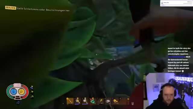 06:02:03Der Stream beginnt mit der Weiterführung des Spiels Grounded. Die Spieler erkunden die Hecke mit dem Ziel, ein Passwort zu finden und eine Mission zu absolvieren. Es wird das Herstellen von Gegenständen wie einem Helm und Werkzeugen erwähnt. Wichtige Ressourcen wie Bärenleder werden gesammelt und die Spieler kämpfen sich durch Gegner wie Spinnen, wobei sie auf die Vorteile von Waffen wie der Ameisenkeule hinweisen, die sehr effektiv gegen bestimmte Gegner ist.