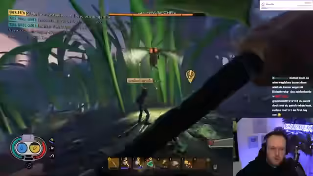 05:14:50Der Streamer stirbt im Spiel und bittet um Hilfe, woraufhin er wiederbelebt wird. Er erhält eine Spende von Mühli und beantwortet eine Frage bezüglich eines Beefs mit einem neuen Leifhausmeister, wobei er andeutet, dass es zum größten Teil real war, aber vom Hausmeister überspielt wurde. Es wird über die Schwierigkeiten im Spiel gesprochen, insbesondere über das Fallen vom Baum. Der Streamer betont, dass das einzige, was Schradin könne, sei am Boden liegen und schreien. Schradin bittet um Hilfe und der Streamer fragt nach dem Zauberwort, woraufhin Schradin "Titte" sagt. Der Streamer greift von hinten an und es kommt zu einem Tag Teamfight gegen die Gegner im Spiel. Der Streamer betont, dass er ein WWE Handicap Match habe. Nachdem die Gegner besiegt sind, sucht der Streamer nach dem anderen Scheißviech und fordert es auf, sich nicht zu verstecken. Er findet einen Kinder-Schokoborn und fragt nach Medikits, die er selbst herstellen soll. Pflanzenfasern und Bärenleder werden für die Herstellung benötigt, wobei das Bärenleder zuerst analysiert werden muss.