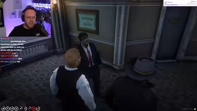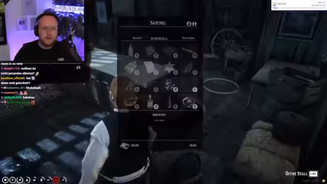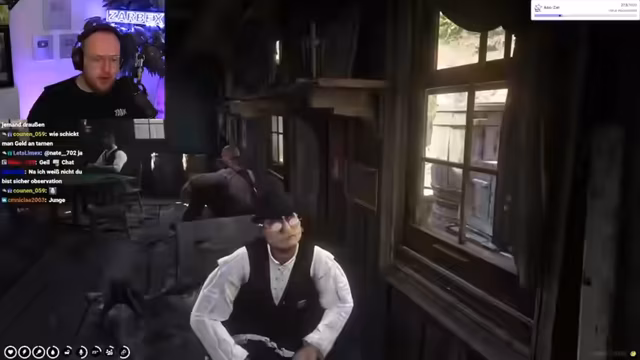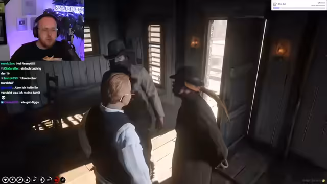 01:07:49Im Spiel schlüpft der Streamer in die Rolle von Officer MacDotter in Saint-Denis. Er teilt seine langfristigen Pläne mit dem Chat: Er möchte der korrupteste Bulle der Welt werden, ins Opiumgeschäft einsteigen und unter der Hand schmuggeln. Sein Hauptziel ist es, den Sheriff Cockburn zu stürzen, da dieser versucht hat, ihm seinen Rang zu nehmen, und eine wichtige Position unter Mr. Valen zu erlangen.