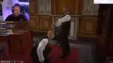 06:00:58Unmittelbar nach der hypnoseartigen Sitzung wechselt die Dynamik abrupt. Officer MacDotter wacht auf, wirkt verwirrt und greift nun seinerseits nach der Macht, wobei er die Befehle des Streamers sofort als Befehle eines Vorgesetzten annimmt. MacDotter beginnt sofort, aggressiv und autoritär vorzugehen, wie ein Sergeant Rekruten zu drillen. Er durchsucht mit brutaler Methode einen Mann in der Bank und findet dabei einen verdächtigen Gegenstand, was einen Streit um eine vermutete Schusswaffe auslöst und die gesamte Polizeiarbeit ins Lächerliche zieht.