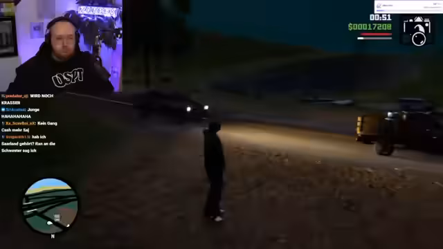 04:51:31Zarbex bedankt sich für weitere Subs und Primes. Er äußert den Wunsch, auf Lowrider-Treffen zu gehen und fragt den Chat, ob diese auf der Karte angezeigt werden oder zufällig gefunden werden müssen. Er plant, seinen Lowrider zu tunen und bei den Treffen mit 1000 Dollar all-in zu gehen, um leicht Geld zu verdienen. Zarbex liest YouTube-Kommentare, in denen steht, dass man viel Geld verdienen kann, indem man Drogendealer tötet. Er plant, Drogendealer zu identifizieren und abzustechen, um an ihr Geld zu kommen. Zarbex fragt, wie Dealer aussehen und erhält die Antwort "grauer Hoodie mit Kapuze auf". Er beleidigt einen Passanten und fordert sein Bargeld. Zarbex erklärt, dass er das Ballers-Gebiet Glen Park erobern muss und geht zur Ammonition, um Waffen zu kaufen. Er kauft eine Schussweste und Schrotflintenmunition, wodurch er "broke" ist. Zarbex testet die Waffe und verliert ein Viertel seiner Weste. Er stellt fest, dass es sich um eine Desert Eagle handelte. Zarbex bedankt sich für weitere Subs und bezeichnet die Aktion als "Minusaktion". Er fährt eine Oma tot und versucht, die Bullen abzuhängen. Zarbex kommentiert, dass ein Rentner mehr Geld dabei hatte als er. Er fährt zum Stinkepark und plant, Drogendealer umzulegen, um sich die Tasche vollzumachen. Zarbex kündigt ein Drive-By-Shooting an. Er tötet mehrere Gangmitglieder und nimmt ihr Geld. Zarbex freut sich über das viele Geld und kommentiert seine "Feuchtigkeit". Er entschuldigt sich bei den überlebenden Gangmitgliedern und tötet sie. Die Cops scheinen seine Taten zu ignorieren. Zarbex erhöht seinen Respekt und kann nun eine Drei-Mann-Gang führen. Er fragt, wie viele Gangmitglieder er töten muss, bis das Lila weg ist. Zarbex tötet weitere Dealer und kommentiert seine "Steifheit". Er betont, dass es nichts Geileres gibt, als Dealer in-game abzuknallen, da sie Schwarzgeld bei sich tragen und nicht zur Polizei gehen können.