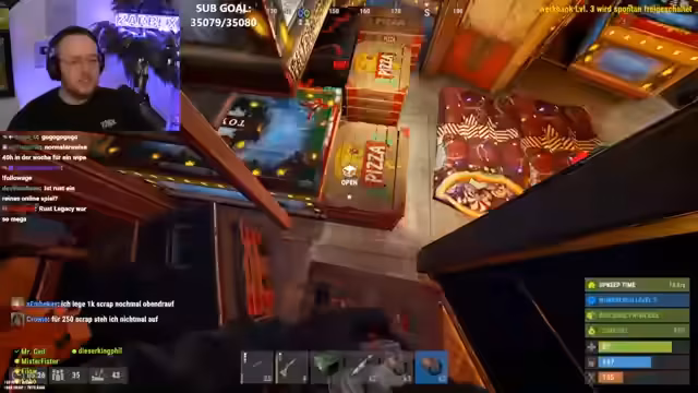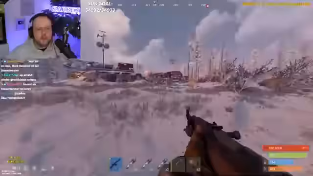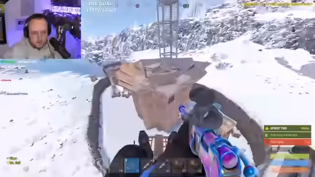 04:59:32Der Streamer plant einen Angriff auf einen Spieler namens Micky, der sich in einer Basis befindet. Er wartet auf das Eintreffen von Verbündeten und beschreibt, wie er den Gegner in-game eliminieren will. Gleichzeitig beschwert er sich über anhaltende technische Schwierigkeiten auf Twitch, wie den nicht funktionierenden Chat und wiederkehrende Fehler, die einen Neustart des PCs erfordern. Zusätzlich ist er auf der Suche nach einem speziellen Tauchgerät.