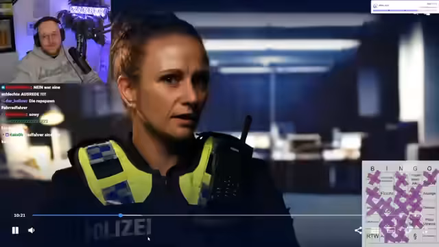 03:58:48Der Streamer geht nach der Folge in den Kfz-Simulator. Das Aufsammeln von Tierkadavern im öffentlichen Verkehrsraum ist eine Aufgabe der Polizei. Regelmäßig fahren wir zu solchen Einsätzen auch mit Sonderrechten, also besonders schnell und mit Blaulicht. Das Frettchen ist geplatzt auf der Straße. Der hat sich so ein bisschen von seinen Innereien getrennt. Der Streamer hat eine Niere gefunden. Der Hase ist an einem besseren Ort, Mann, der ist im Hasenhimmel. An jeder Wache gibt es eine Tierkadaver-Tonne. Da wird dieses Tier oder der Tierkadaver zunächst erst mal gelagert. Im Anschluss informieren wir das Institut für Hygiene und Umwelt, die sich dann um das Einäschern kümmern. Wir kriegen relativ zeitnah die Information, dass die Person, um die es geht, bei uns im Reviergebiet wohnhaft sein soll, was für uns einen Prüfauftrag quasi bedingt, diese Anschrift einmal zu überprüfen. über Snapchat. Und er ist gerade mit seinem Fahrzeug unterwegs, das ist ein schwarzer Mercedes. Er hat sich nach einer Trennung suizidieren möchte. Selbstmord ist nie ne Lösung. Für sie ist das mindestens genauso schlimm. Was meint ihr, wie viele Leute in toxischen Beziehungen gefangen sind, weil die sich nicht trauen, Schluss zu machen oder so, weil der Partner sagt, wenn du Schluss machst, bring ich mich um.