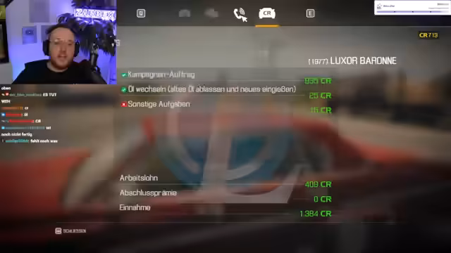 07:48:26Zarbex bedankt sich bei den Zuschauern für die Unterstützung und betont, dass er ehrliche Arbeit leistet im Gegensatz zu anderen Streamern. Er beschreibt seinen Alltag mit Zigaretten, Maurerstulle und dem Blick auf vorbeigehende Frauen. Er betont seinen guten Service, inklusive Ölwechsel. Zarbex spricht über Spenden und die Wertschätzung der Zuschauer. Er spricht einem Zuschauer Mut zu, der mit einer schweren Krankheit kämpft, und wünscht ihm gute Genesung und Kraft. Zarbex führt einen Ölwechsel durch, füllt Wischwasser und Servoöl nach. Er füllt Motoröl nach und bereitet das Auto für eine Probefahrt vor.