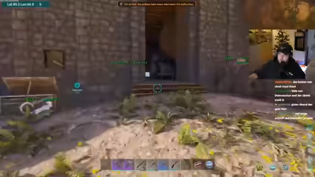 02:13:11Der Stream startet ARK: Survival Evolved mit Eli und G-Time. Es geht um die Zucht von Dinos, wobei der Streamer einen Level-40-Dino zum Paaren empfängt. Nach technischen Problemen beim Joinen (Server-IP, Spielabsturz) gelingt der Einstieg. Der Streamer gibt G-Time Tipps für die Base, insbesondere zur Nutzung der Pull-Funktion in der Werkbank, um Ressourcen effizient zu verarbeiten, und diskutiert Flugoptionen mit Argenavis oder Flugsauriern.