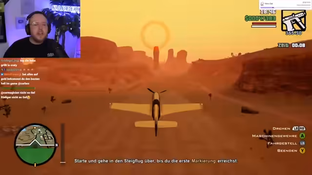 05:07:57Nachdem eine Monstertruck-Mission gescheitert ist, versucht der Streamer, Flugschulmissionen zu absolvieren. Er leidet unter Platz- und Flugangst und hat Schwierigkeiten, das Flugzeug unter Kontrolle zu halten und zu landen, was zu mehrmaligem Absturz führt. Parallel wird der Streamer von der Verbrecherorganisation Ballas in eine Falle gelockt, indem er aus einem Auto gestoßen und in der Wildnis ausgesetzt wird, was zu einem langen und frustrierenden Fußmarsch durch die Wüste führt.