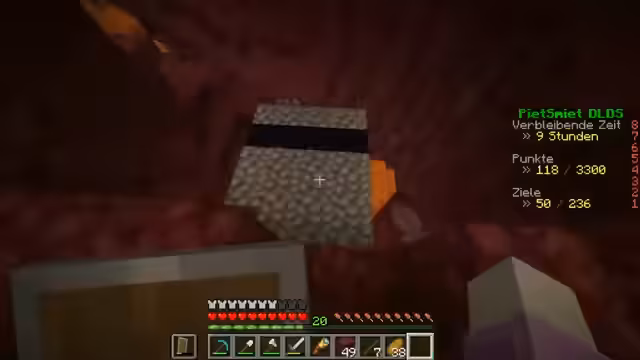 03:31:36Zu Beginn dieses Stream-Abschnitts erkundet der Streamer die Umgebung und sammelt Ressourcen. Er erwähnt eine Neurodegenerative Erkrankung, die in Minecraft thematisiert wird, und stößt auf Lava, was ihn zu einem strategischen Rücktritt zwingt. Er führt eine Bestandsaufnahme durch und stellt fest, dass er über 27 Eisenblöcke und 6 ungekochte Eisenstücke verfügt. Darüber hinaus erwähnt er seine Spitzhacke, die kaputt gegangen ist, und plant, eine neue zu craften. Er entdeckt weiteres Eisen, Diamanten und ungeschmolzenes Eisen, und es wird über die Notwendigkeit von Goldäpfeln und anderen Gegenständen gesprochen.