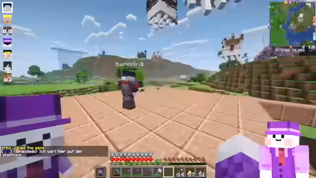 01:30:13Das Event startet mit technischen Problemen, da der Streamer das Spiel neu laden muss. Er ist sich unsicher, ob er dem Event bei Craft Attack beitreten soll, da es etwas ungünstig ist. Multiplayer wird mit der Maus getestet und funktioniert. Der Streamer erkundet die Map und findet verschiedene Objekte wie eine Krackkanone, einen Gravity Dinger und Flügel, wobei er einen Dreifachsprung hat.