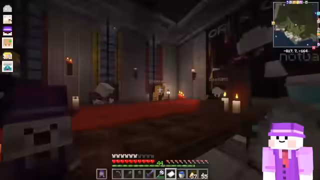 05:13:28Der Streamer plant den Bau eines Boost-Systems auf der Netherdecke, um schnell nach oben zu gelangen. Er sammelt dafür Dispenser und Wind Charges. Während seiner Erkundung stößt er auf ein großes Bauprojekt, das "Infinity Castle" aus Demon Slayer, das von anderen Spielern errichtet wird. Er ist beeindruckt vom Fortschritt und der Größe des Bauwerks. Später wird er von Hanno in einen Meetingraum eingeladen, den dieser für die "Säulen" baut. Der Streamer ist beeindruckt von der Detailverliebtheit des Raumes, einschließlich eines Whiteboards mit Thumbnails anderer Streamer, einer Kaffeemaschine und geplanten dekorativen Elementen. Er gibt Hanno Tipps zur weiteren Gestaltung und lobt die geleistete Arbeit.