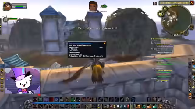 00:48:21Nach einigen Fehlversuchen beim Layerwechsel, um den Rezept-Händler zu erreichen, gelingt es dem Streamer und seiner Gruppe schließlich, denselben Server zu wählen und den Händler anzusprechen. Er kauft das Rezept für 'Schattenöl' erfolgreich, was es ihm ermöglicht, seine Lederarbeit zu verbessern. Der Stream beschließt den Abschnitt damit, dieses Rezept per Post nach Sturmwind zu schicken und die Session beendet.