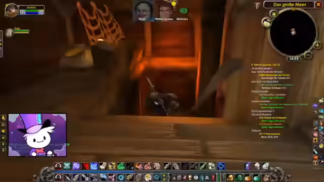 02:21:50Zombey ist Teil einer kooperativen Questgruppe, die aus Spielern mit ähnlichen Levels besteht. Er nutzt das In-Game-Gilden-System, um geeignete Partner zu finden. Gemeinsam mit Urotox plant er, eine Escort-Quest zu absolvieren, bei der er vorsichtig ist, um NPCs nicht aus Versehen anzugreifen. Während des Questens erfährt er, dass Gruppenquests nicht automatisch für alle angenommen werden können, was zu Verwirrung führt. Die Gruppe versucht, dies zu klären und setzt ihre Quests fort. Zombey plant, sich später mit der Gruppe wiederzuverbinden, nachdem er kurz einkaufen gehen wird.
