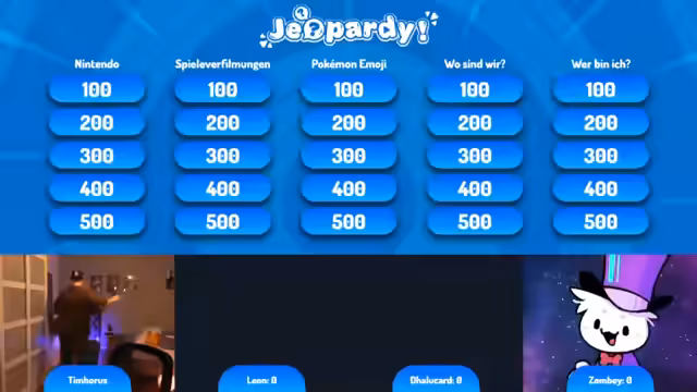 00:12:14Tim Horus erklärt das Format des Gaming-Quiz, das als "Jeopardy"-Folge angekündigt wird, aber ein normales Quiz mit zwei Boards und verschiedenen Kategorien beinhaltet. Die Punktewerte steigen von 100 bis 500 auf dem ersten Board und von 200 bis 1000 auf dem zweiten Board. Es gibt eine finale Schätzfrage, bei der Bonuspunkte oder Minuspunkte erzielt werden können. Die Reihenfolge der Kategorienauswahl wird festgelegt, wobei Leon beginnt, gefolgt von Dalu und Zombey. Die Kategorien auf dem ersten Board umfassen Nintendo, Spieleverfilmung, Pokémon Emoji, Wo sind wir und Wer bin ich. Es wird klargestellt, dass die Antworten hauptsächlich nicht im Jeopardy-Stil gegeben werden müssen, außer in einer speziellen Kategorie auf dem zweiten Board, wo die Antworten als Fragen formuliert werden müssen. Die Buzzer-Funktion im OBS wird erklärt, und die Lautstärkepegel der Teilnehmer werden angepasst.