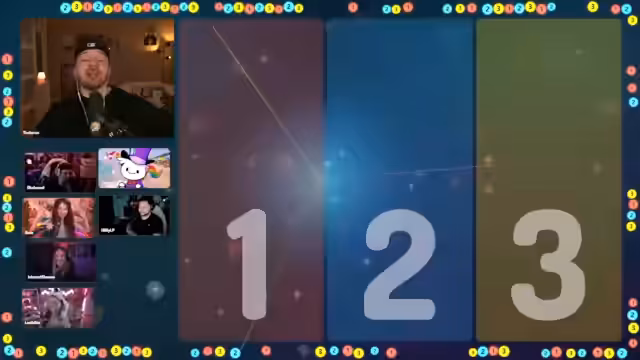 00:29:09Der Streamer beginnt offiziell die Show '1,2 oder 3' und stellt die teilnehmenden Teams vor. Nach der Vorstellung des Spiels, bei dem die Teilnehmer mit der WASD-Tastatur auf die Felder 1, 2 oder 3 rennen müssen, startet die erste Frage über das richtige Popcornzubereiten. Die Teams bewegen sich chaotisch durch die virtuelle Landschaft, schieben sich gegenseitig und treffen ihre Entscheidung, bevor die richtige Antwort mit einer Erklärung bekannt gegeben wird. Holly und Shauna holen den ersten Punkt.