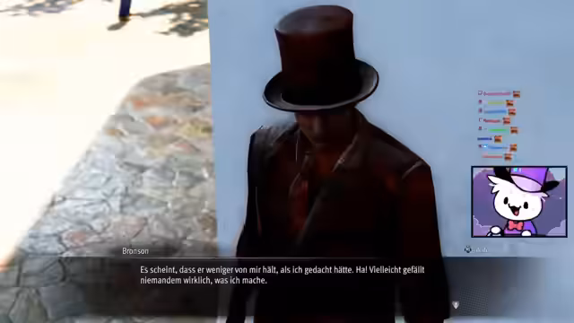 02:40:44Ein neues Minispiel namens Sicko-Snap wird aktiviert, bei dem es darum geht, pervers gestaltete Personen in der Stadt zu fotografieren, bevor die Polizei sie festnimmt. Der Streamer erledigt diese Mission erfolgreich, sammelt dabei Punkte und erhält als Belohnung einen tauglichen Kandidaten für seine Crew. Mit den gesammelten Punkten kauft er schließlich den 'Patriarch Gondavara', einen Mann in Windeln, als neues Crewmitglied für die Piraten-Crew hinzu.