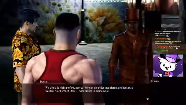 00:10:28Nach einigen organisatorischen Abläufen und Interaktionen im Chat beginnt der Stream mit dem Fortsetzen des Spiels 'Like a Dragon: Infinite Wealth'. Die Spielfigur, Ichiban, befindet sich mit seiner Crew in der Stadt Honolulu auf Hawaii. Die Erkundung der Stadt offenbart eine Vielzahl von Nebenquests, die auf der Karte auftauchen. Eine wichtige Interaktion führt zu der Aloha-Links-App, einer Social-Media-Plattform, die als Schlüssel zur Navigation und zur Rekrutierung von Crewmitgliedern dient. Der Barkeeper hilft bei der Installation der App und fügt den ersten Kontakt, 'Kuromajima', zur Freundesliste hinzu. Zudem wird die Ankunft im Gasthaus und die Anpassung des Charakter-Outfits thematisiert. Ein breites Spektrum an Kleidungsstücken, von Piraten-Outfits bis hin zu Wrestling-Masken und professionellen Anzügen, wird präsentiert, was dem Charakter eine neue Optik verleiht.