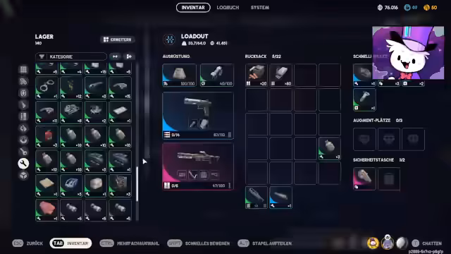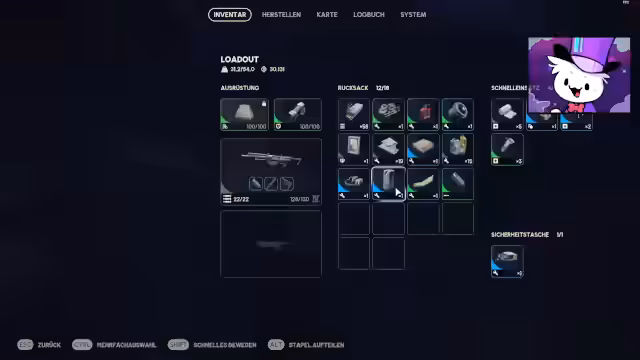 00:08:32Der Streamer reflektiert über seine Lautstärke im vorherigen Stream und entschuldigt sich dafür, da sein Hals immer noch rau ist. Er zeigt sein Inventar in Ark Raiders und erwähnt, dass er Quests im Solo-Modus vorangebracht hat. Eine neue Frisur ist zwar vorhanden, aber unter der Kapuze nicht sichtbar, weshalb er bei seiner alten Frisur bleibt. Die Rede kommt auf die Expedition, für die unendlich viele Materialien abgegeben werden müssen, darunter 35 Stück Stoff und 30 Kabel. Es wird als verrückt empfunden, wie viel Aufwand betrieben werden muss, um eine Expedition zu starten und das Prestige zurückzusetzen. Das Abreisefenster für die Expedition ist jedoch noch nicht aktiv, was den Druck nimmt, alles sofort fertigzustellen. Das Zurücksetzen des Charakters durch Prestige bringt Vorteile wie Bonus-XP, mehr Scrappy-Materialien, verbesserte Waffenreparaturen und mehr Lagerplatz, setzt aber auch viele Fortschritte zurück, wie Lagerverbesserungen, Metallgegenstände, Baupläne, Münzen, Spielerstufe, Ferienpunkte, Raiderhöhle und Werkstattquests. Freigeschaltete Karten und Arbeitsstationen bleiben jedoch erhalten.