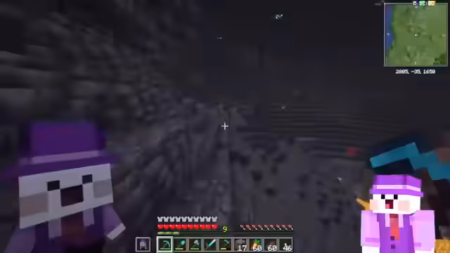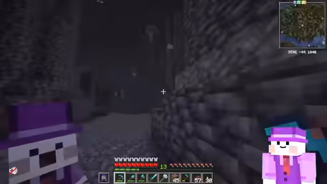 02:47:44Die Suche nach der Ancient City gestaltet sich schwierig und dauert länger als erwartet. Nach Stunden erfolgloser Suche baut der Streamer nervös Gruben ab, um eine Stadt zu finden. Als die Stadt endlich entdeckt wird, ist der gefundene Bereich voller gefährlicher Skulk-Sensoren, die den Warden sofort herbeirufen. Eine Taktik ist es, Tunnel zu graben, um den Warden zu meiden, da er zu groß ist, um durch enge Gänge zu passen, aber er durch Wände angreifen kann. Die Stadt enthält reiche Beute, einschließlich verzauberter Diamant-Rüstung.
