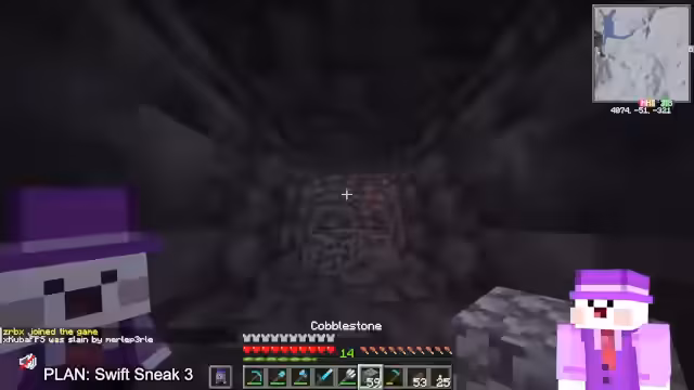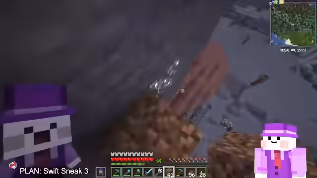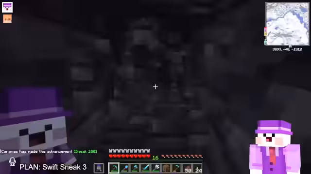 00:16:40Die Ziele des Streamers verlagern sich auf die Erkundung der Overworld. Er stellt klar, dass er heute keine Achievements jagen möchte, sondern stattdessen auf der Suche nach einer unberührten Ancient City ist, um darin Swift Sneak für seine Ausrüstung zu finden. Nebenbei erwähnt er seine Pläne, Ressourcen wie Kupfer und Fäden zu sammeln und interagiert mit dem Chat über verschiedene Spieler auf dem Server, wie Leon Bonge und dessen Festungsbau.