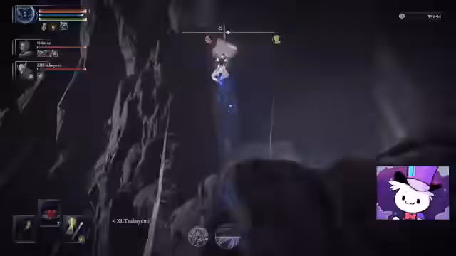 00:26:40Das Stream-Team beginnt den ersten Versuch, den Night Reign-DLC zu spielen. Sie erkunden eine völlig neue Karte, die vertikal ausgerichtet ist und an einen Ort aus dem ersten Dark Souls DLC erinnert. Schnell werden die ersten Probleme deutlich: Ein hoher Schaden durch Umgebungsgefahren, eine reduzierte Lebensleiste und eine massive Überforderung durch das Inventar-Management, da Items gelevelt werden müssen, der Platz aber extrem begrenzt ist. Der erste Bosskampf gegen den Trümmerfürsten gestaltet sich als schwierig und fordert mehrere Versuche.