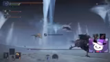 01:32:51Zwischenzeitlich konzentrieren sich die Streamer auf den Kampf gegen einen Eisdrachen-Boss. Es werden taktische Entscheidungen getroffen, wie der Einsatz von Fähigkeiten, um Schaden zu minimieren und gegnerische Attacken wie das Fallenlassen von Eisspitzen auszuweichen. Chiara wird während des Kampfs besiegt, während der andere Spieler versucht, die Situation durch Heilungen und Ultimativen-Attacken zu stabilisieren. Der Kampf ist geprägt von Missverständnissen, unkoordinierten Bewegungen und knappen Überlebenssituationen, was zu mehreren Toden führt.