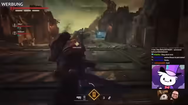 00:17:43Beim Start des Sieg-Modus werden die ersten technischen Probleme deutlich: der Host hat erhebliche Lags, während die anderen Spieler kaum davon betroffen sind. Die Gruppe muss sich im Menü orientieren und stellt fest, dass alle ihre Charaktere und Waffen auf Level 1 sind. Da man im Modus Einsätzen und Sieg separat levelt, haben sie im Vergleich zu anderen Teilnehmern einen Nachteil. Trotzdem wählen die Spieler ihre Klassen: Holly entscheidet sich für einen Scharfschützen, Dalukat für einen Angriffsspezialisten und der Streamer für den Verteidiger mit Schild.