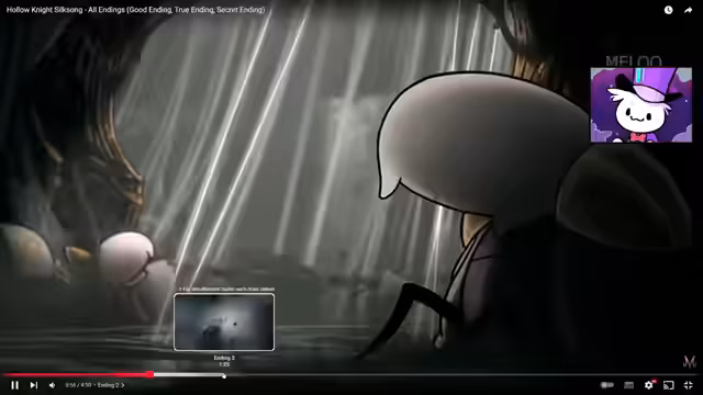 04:39:08Die letzten Meter zu 100% werden angegangen. Der Streamer findet ein neues Trinket, das sich jedoch als Müll herausstellt. Es wird versucht, die Zielsorans zu besiegen, aber diese erweisen sich als schwierig. Der Kranz der Reinhardt wird gefunden und der Streamer erreicht 100%. Es werden 44 Stunden und 49 Minuten für 100% benötigt. Der Streamer bedankt sich bei den Zuschauern für das Dabeisein und beendet den Silksong-Stream. Es wird erwähnt, dass es in Zukunft möglicherweise weitere Streams geben wird, wenn Updates für das Spiel erscheinen. Es wird festgestellt, dass ein Talisman oder Tool scheinbar ein Prozent ausmacht, was die Prozente schnell hochgepusht hat. Der Streamer ist kein Freund von dem Wappen- und Sockelsystem. Es gibt Kritik an dem Geldsystem, bei dem Geld in Stacheln verschwindet. Der Streamer schickt die Zuschauer zu Alpha Red, der gegen Zote in Hollow Knight kämpft.