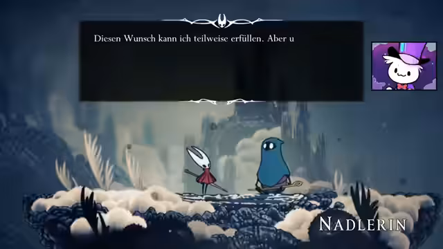 00:33:26Es wird über Dialoge nach einem Kampf gesprochen, in denen die Figur nicht getötet wird, sondern inspiriert wird und ein Abzeichen erhält, das die Aufladezeit des Fokusangriffs verringert. Es wird überlegt, Lid zu spielen und ein verlorener Ordensschöner Jungfern erwähnt. Ein Besuch bei Mr. Maske steht an, da sowieso später wegen der Pilz-Quest hierhin geklettert werden muss. Es wird festgestellt, dass sich das Spiel durch Akt 3 wenig geändert hat und dass optionale Gebiete relativ sicher geblieben sind. Es wird ein Dialog mit dem Maskenmann geführt, in dem er über die bevorstehende düstere Zukunft spricht und die Rolle der Wächterin, Jägerin und Monarchin anspricht. Es wird überlegt, ob es noch etwas Krasses herauszufinden oder zu machen gibt bei ihm. Es wird erwähnt, dass Hollow Knight noch eine Chance gegeben wird, aber es teils ein Plattformer ist und nicht jedem liegt. Die Maske wird geholt und es wird festgestellt, dass sie wie eine Höhle aussieht. Es wird überlegt, wo sich etwas zwischen Tiefenkei und den weiten Feldern befindet, und Holly Geräusche hört, die eine Maske macht. Es wird überlegt, was mit den Waren eines Händlers passiert, der stirbt, und vermutet, dass alles zu den Dieben geht.