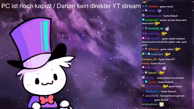 05:55:37Nach dem Auslaufen des Festtagskrugs kehrt der Streamer zurück in sein Gildenhaus, um sich auszuruhen und einen privaten Moment mit seinem Haustier Eberhard zu verbringen. Anschließend gibt er eine Zusammenfassung der abgeschlossenen Quests und gibt den Termin für den morgigen Dungeon bekannt. Er bedankt sich bei der Community für den Stream und verabschiedet sich mit einem guten Rutsch ins neue Jahr.