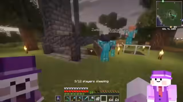 04:27:11Der Streamer versucht, die Nacht im Spiel zu überspringen, was als Katastrophe beschrieben wird, letztendlich aber von der Community gemeistert wird. Er interagiert mit anderen Spielern, deren Projekte er bewundert, und hilft einem Spieler, der dringend Observer für einen TNT-Duper benötigt. Die anhaltenden Server-Probleme, wie das Ausloggen vieler Spieler gleichzeitig, werden angesprochen, was die Spielfrust steigert.