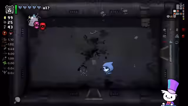 00:24:07Der Streamer startet mit der Hot Potato Challenge, bei der er als Charakter Tainted Lost spielt und einen Skelettkopf hat, der sich alle paar Sekunden selbst zur Explosion bringt und Schaden anrichtet. Ziel ist es, ohne HP-Ups oder rote Herzen bis zu Satan zu kommen, wobei Bewegungsgeschwindigkeit entscheidend ist. Der Streamer beschreibt den Verlauf des ersten Raums, sammelt Items und analysiert die Herausforderungen, wie z.B. den Umgang mit Gegnern, die ihn in die Ecke drängen, und den Versuch, den Skelettkopf strategisch einzusetzen.