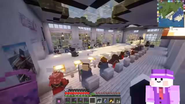 02:01:04Es wird die Idee geäußert, ein kleines Museum auf dem Server zu errichten, das Situationen und Momente aus dem Serverleben darstellt. Dies könnte beispielsweise Betten mit der Aufschrift "Zwei von Zwölf" oder deaktivierte Raketen im Item Frame umfassen, die "Schmerz" symbolisieren. Auch Tweets oder andere Ereignisse könnten festgehalten werden. Es wird ein Mod namens "Cool Rain" vorgestellt, der unterschiedliche Regengeräusche auf verschiedenen Blöcken erzeugt, was demonstriert wird. Die Teilnehmer werden aufgefordert, Rose's "Houseparty" zu besuchen, um sich die Geräusche anzuhören. Es wird erwähnt, dass das Event verschoben wurde, da die Webseite gesponnen hat und Tamina's Internet abgestürzt ist. Es wird beschlossen, weihnachtliche oder allgemeine Songs zu singen. Alphastein wird als Erster zum Singen aufgefordert, obwohl er den Song nicht kennt. Es wird über einen Mod diskutiert, der Rüstungen unsichtbar macht, um das Ausziehen zu vermeiden. Die Jury wird humorvoll als 13-Jährige bezeichnet. Es wird eine "Generalprobe" für das Event vorgeschlagen, um die technischen Probleme zu beheben.
