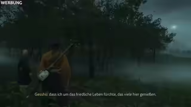 01:29:39Entdeckt Vorräte für Bedürftige, die von Saito hinterlassen wurden. Es werden Pilze gefunden, aber festgestellt, dass Fische in diesem Spiel besser sind. Es erfolgt ein Überraschungsangriff auf Gegner, wobei freundliche NPCs helfen. Es wird die Möglichkeit demonstriert, das Katana per Tastendruck wegzustecken, was als positiv hervorgehoben wird. Gegner können mit Krügen abgelenkt werden. Eine Dame wird befreit und nach Informationen über Kitsune gefragt, wobei die Gegend als verflucht beschrieben wird. Der Stream wird beworben und auf den Link im Chat und das Panel unter dem Stream verwiesen. Ein Lager des verlorenen Mönchs wird von einer Horde Pferde angegriffen. Dem Mönch wird geholfen, Schreine zu finden. Ein kurzer Regenschauer zieht auf und ein Altar der Besinnung wird entdeckt.