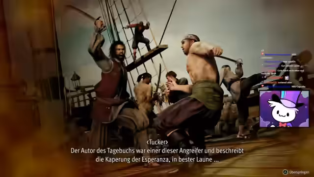 03:20:50Die Reise geht weiter mit neuen Quests und Abenteuern auf hoher See. Der Streamer navigiert sein Piratenschiff, kämpft gegen andere Piraten und verbessert seine Crew und sein Schiff. Es werden verschiedene Gameplay-Mechaniken gezeigt, wie das Kämpfen, die Schiffssteuerung und die Interaktion mit NPCs. Der Streamer freut sich über die Herausforderungen und das Gefühl, sich als Kapitän zu bewähren.