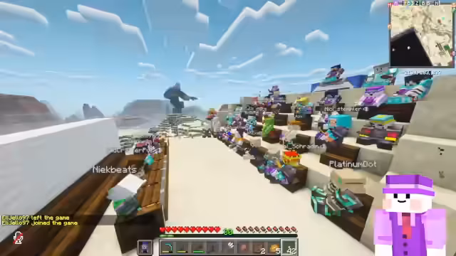01:38:32Kedos erklärt Zombey das Spleef-Event, ein klassisches Minecraft-Minispiel, bei dem Spieler versuchen, den Schnee unter ihren Gegnern abzubauen, um sie fallen zu lassen. Sie sprechen über die Regeln des Turniers, das als Eins-gegen-Eins-Elimination geplant ist. Kedos erwähnt, dass er die Teilnahme von Trimax und Papaplatte erwartet und hofft, dass viele Leute mitmachen. Zombey bietet an, Trimax's Trident-Farm zu nutzen, um Tridents für das Event zu sammeln. Kedos ist zuversichtlich, dass Zombey das Turnier gewinnen wird, da er eine 'Spleef-Background' hat.
