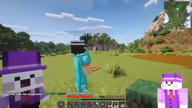 01:49:08Zombey trifft auf Trimax und erhält von ihm Kartoffeln und einen Trident, den Trimax von seiner Farm übrig hatte. Zombey bedankt sich für die Geschenke und erwähnt, dass er Isa mit Essen bestechen wollte, um ihr Gebäude nicht TÜV zu prüfen. Er erkundet weiterhin die Welt und plant, später Trimax's Bauwerke zu besuchen. Zombey bewundert Trimax's Rüstung und sein majestätisches Aussehen. Die Mission, Trimax zu treffen und Gegenstände zu erhalten, ist erfolgreich, und Zombey verabschiedet sich, um seine Erkundung fortzusetzen.