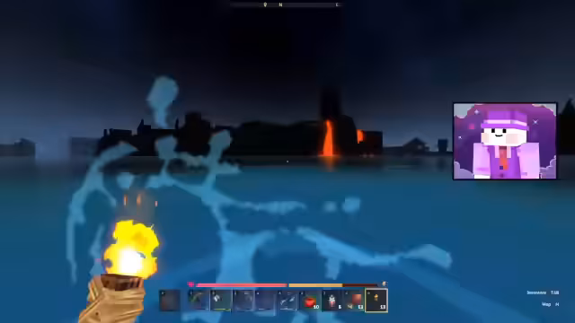 08:45:02Die Suche nach einem Gleiter, dem Streamer zufolge ein wichtiges Reiseinstrument, bleibt erfolglos. Stattdessen stößt er auf eine vulkanische Insel, in deren Mitte sich ein großer Schatz mit Gold, Rubinen und Saphiren befindet. Die Entdeckung erfordert viel Geschick und den Einsatz von Wasser, um an die Beute zu gelangen. Es zeigt sich das große Potential des Spiele-Worldgens.