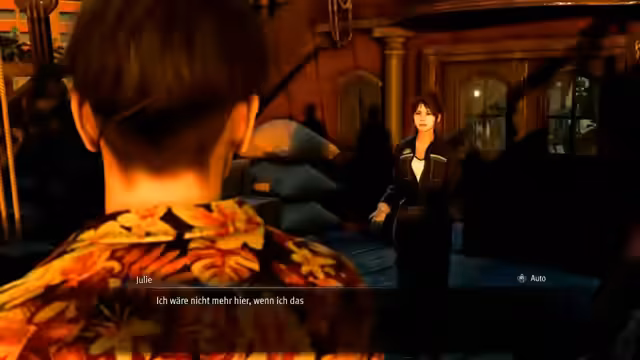00:38:51Auf der Insel trifft Majima Noahs Vater, einen misstrauischen Schatzsucher, und weitere Bewohner, wie die Fischerin Moana und mollige Inselbewohner. Majima sucht verzweifelt nach einem Boot, um von der Insel zu fliehen. Er nimmt es mit einem aggressiven Piraten, Jason, auf und lernt bei der Konfrontation mit ihm neue Kampfbewegungen wie das Ausweichen in der Luft und spezielle Wurftechniken. Im Verlauf werden ihm weitere Lokalitäten wie die Bar Esperanza und ein Lager gezeigt, wo er Gegenstände verkaufen und Handlungen durchführen kann.