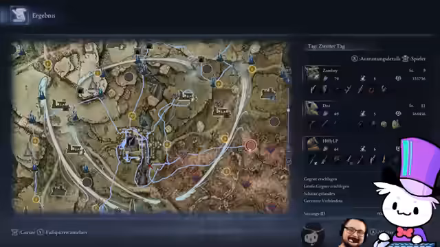 00:46:45Der Streamer bereitet die Kooperation mit Holly und Divi vor. Es kommt zu einer kleinen Missverständnisdiskussion über den Startzeitpunkt des Streams, die aber schnell gelöst wird. Nachdem alle drei im Spiel sind, beginnt die gemeinsame Gameplay-Session. Sie erkunden die Spielwelt, sammeln Loot und bekämpfen Gegner. Dabei erwähnen sie verschiedene Gegenstände wie Relikte und Waffen mit besonderen Fähigkeiten. Der Streamer zeigt auch die Map und markiert interessante Orte wie Kirchen und Festungen. Die Gruppe beschließt, bestimmte Gebiete zu erkunden, um Items zu sammeln und vorzubereiten für die Kämpfe gegen die Nightlords.