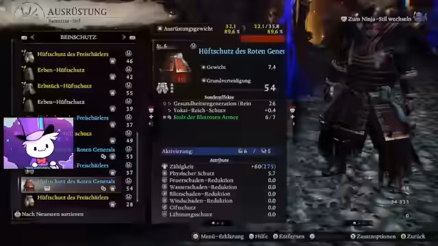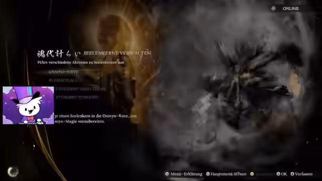 00:23:18Im Laufe des Streams taucht der Streamer tiefer in die Kampfmechaniken ein. Er testet verschiedene Waffen, darunter ein Odachi und eine Axt, und experimentiert mit der Ninja-Form und deren besonderen Fähigkeiten wie Katzenkick und Parry. Er entdeckt auch das neue System der 'Seelenkerne', die man im Magie-Menü ausbauen und passiv oder aktiv einsetzen kann, um Boni zu erhalten oder magische Fähigkeiten vorzubereiten.