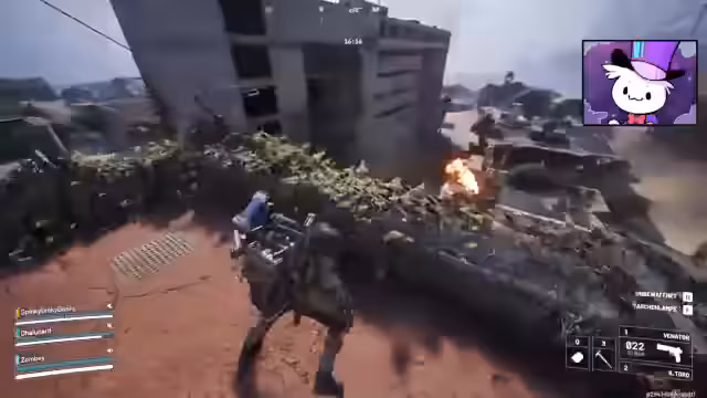 00:33:00Zombey informiert den Chat über das laufende Community-Event für die neue Map. Sobald die Fortschrittsleiste voll ist, wird die neue Map freigeschaltet. Spieler können Merits ausgeben, die sie durch Materialspenden erhalten haben, wobei das Cap schnell erreicht wurde. Die neue Map wird voraussichtlich neue Waffen und Materialien mit sich bringen. Es wird erwartet, dass mindestens zwei neue Waffentypen eingeführt werden. Die Gruppe bereitet sich auf eine neue Runde vor, wobei Zombey eine Venator-Waffe ausprobiert. Während des Spiels wird ein Kanonier gesucht, der für eine Quest getötet werden muss. Die Spieler stoßen auf einen festsitzenden Käfer, der ihnen als Ziel dient. Ein Airdrop wird gerufen, um Loot zu erhalten, aber Zombey steckt im Boden fest, was auf einen Bug hindeutet. Die Gruppe plant, den Bunker zu erkunden, der guten Loot verspricht.