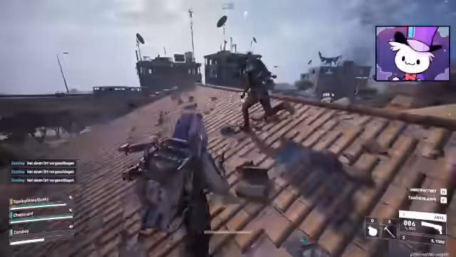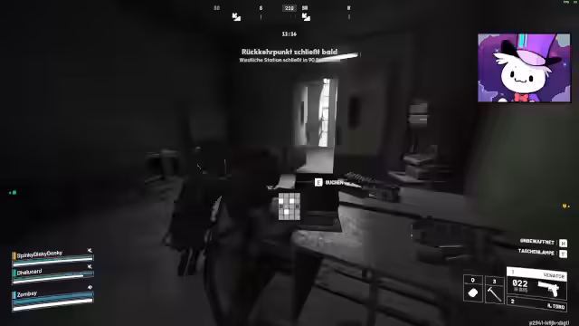 00:13:12Im Raumhafen suchen die Spieler nach Sonden und Zombey hat eine Quest, einen Raketen-Kanoniert zu töten. Sie diskutieren über die Effektivität von Security Breaches im Raumhafen und die Möglichkeit, Schalldämpfer-Baupläne zu finden. Zombey findet einen Bauplan für Schalldämpfer 2, den er bereits besitzt, und bietet ihn seinen Teamkollegen an. Während des Lootens kommt es zu einem Kampf mit anderen Spielern. Die Gruppe wird von Gegnern angegriffen, die sich gut positioniert haben und Granaten einsetzen. Zombey fällt vom Dach und stirbt, während seine Teamkollegen versuchen, die Gegner zu bekämpfen. Die Desync-Probleme im Spiel werden kritisiert, da Gegner unsichtbar erscheinen oder aus unerwarteten Winkeln angreifen. Die Gruppe muss sich neu formieren und überlegt, wie sie mit der Situation umgehen soll.